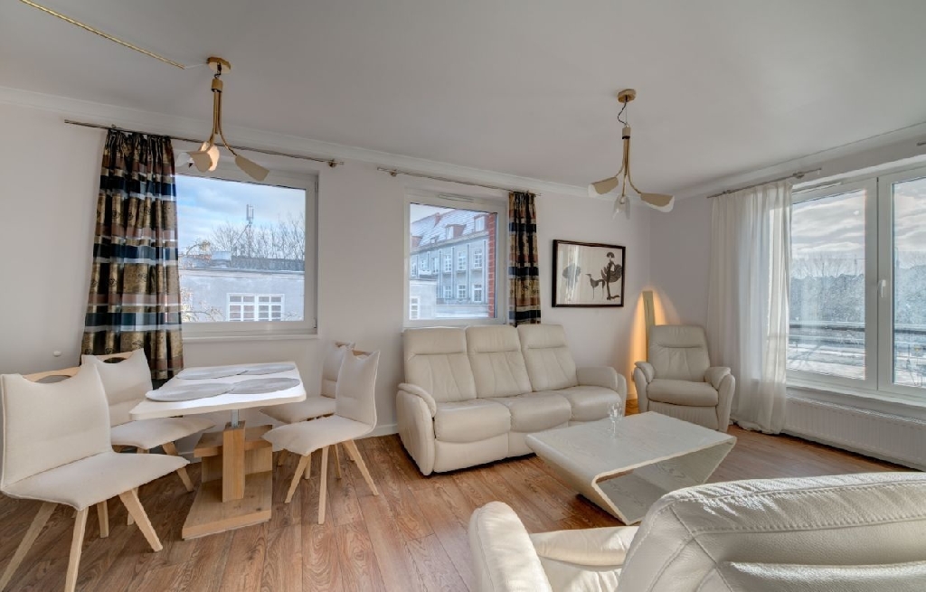 Apartament w doskonałej lokalizacji, w obrębie historycznego śródmieścia Gdańska, w sąsiedztwie znanych zabytków gdańskiej starówki (ulica Długa, ulica Mariacka, Motława). Potrzeba jedynie kilka minut spacerem aby znaleźć się wśród licznych kafejek, restauracji, klubów i hoteli (Hilton, Fahrenheit)