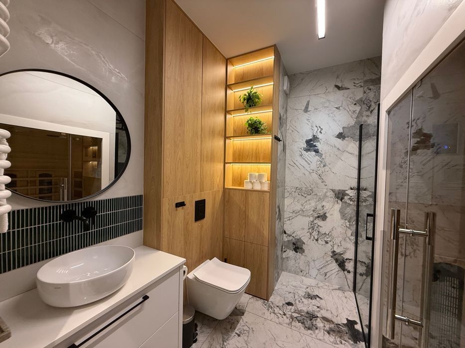 - Łazienki - prysznic, sauna na podczerwień, pralka, szafki