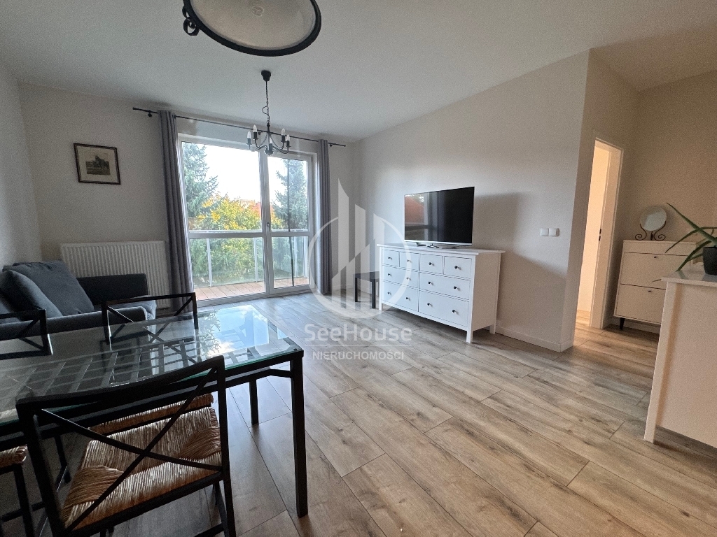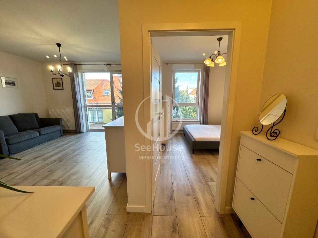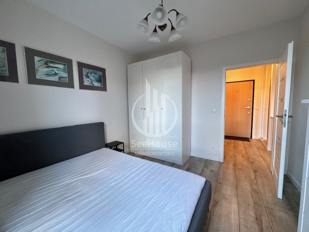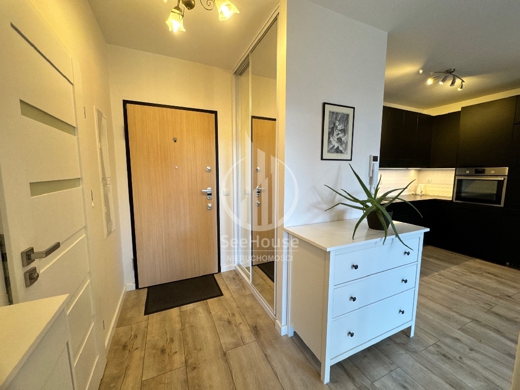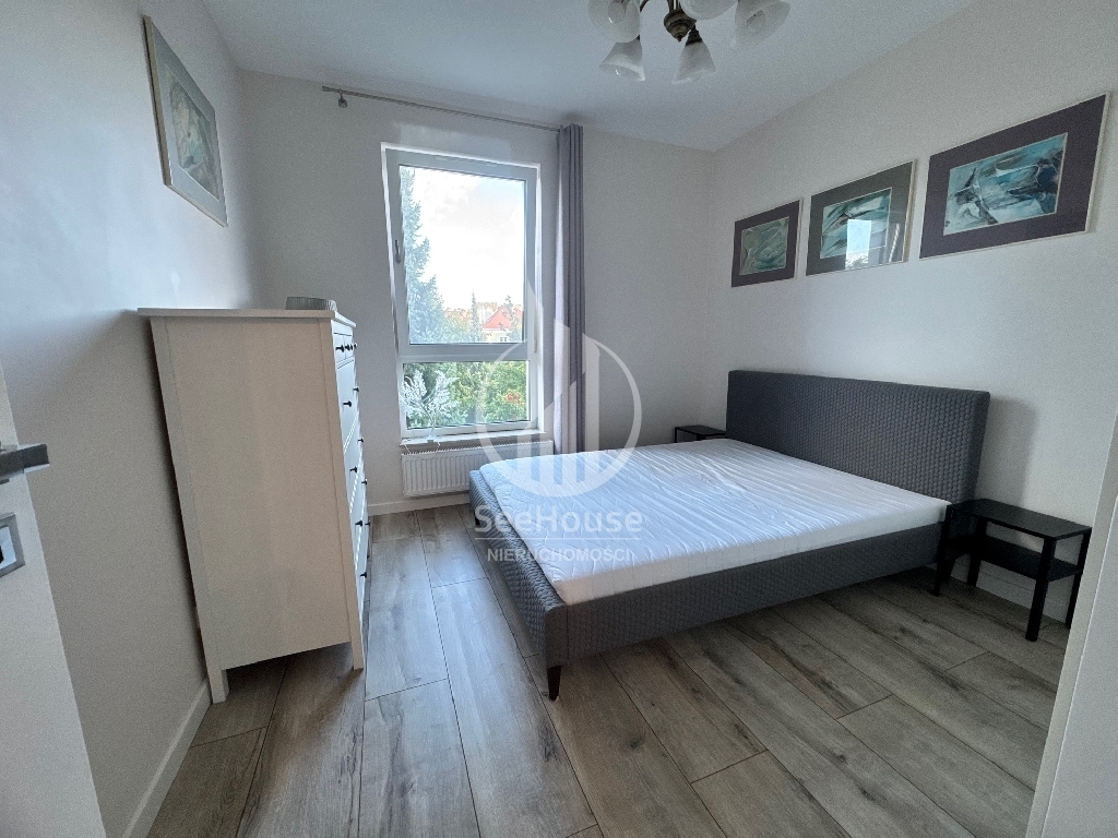 Mieszkanie znajduje się na 2 piętrze i składa się z salonu z aneksem kuchennym, sypialni, łazienki oraz przedpokoju. Mieszkanie w pełni umeblowane i wyposażone (lodówko-zamrażarka, piekarnik, zmywarka, płyta grzewcza, pralka). Do mieszkania przynależy komórka lokatorska oraz miejsce postojowe w hali garażowej (dodatkowo płatne 200 zł).
