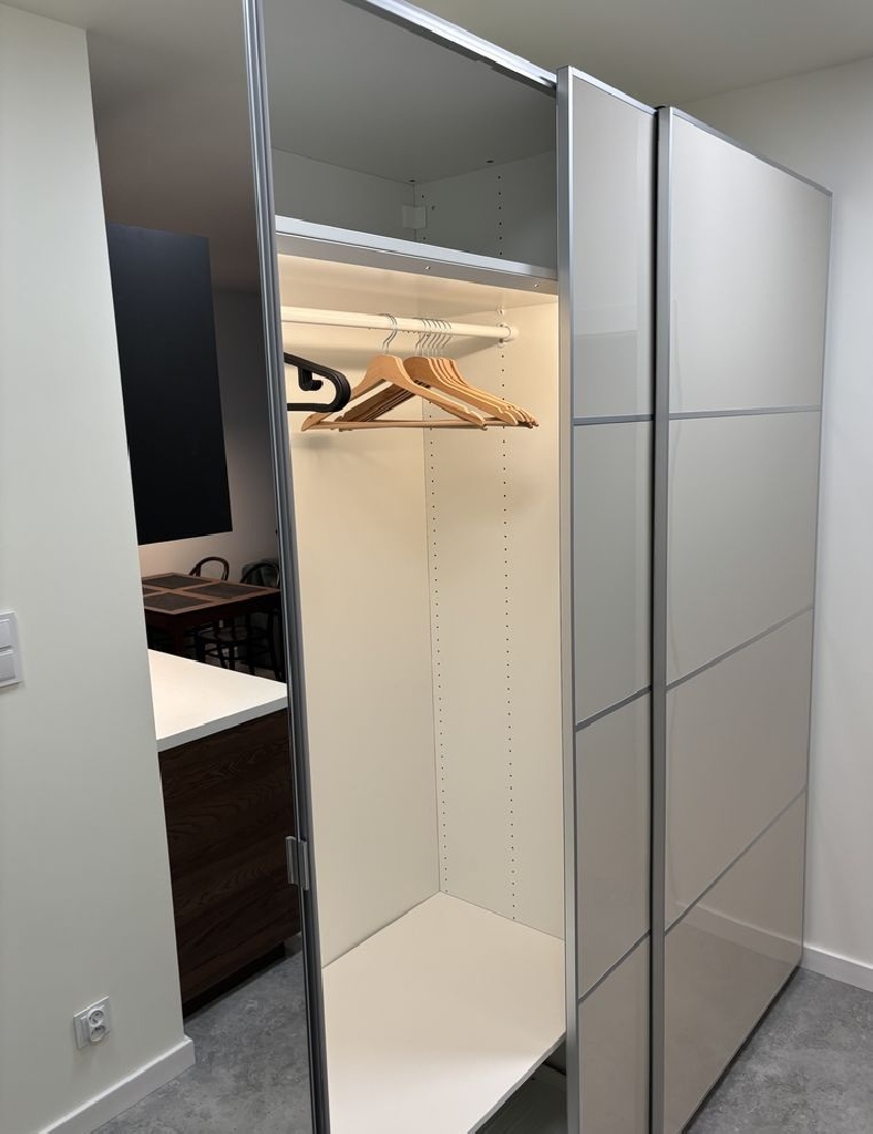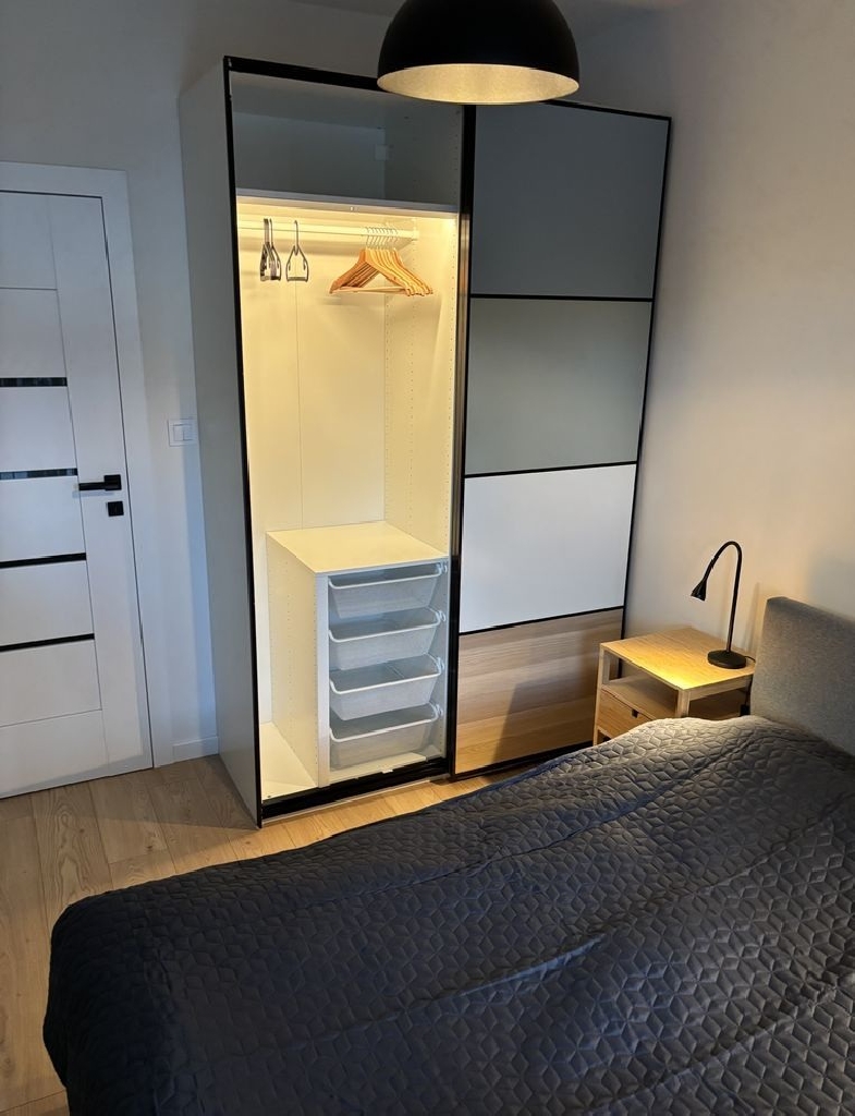 - Sypialnia – łóżko , pojemna szafa podświetlona wewnątrz kosze pod wymiar