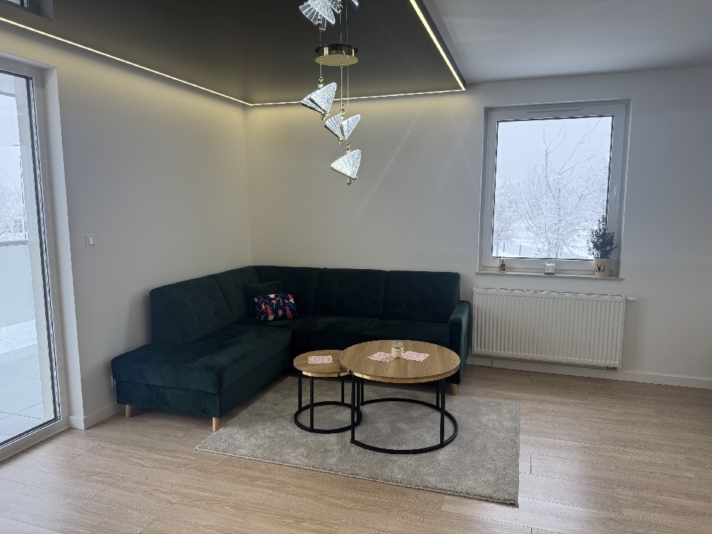 Mieszkanie jest zupełnie nowe, umeblowane i nowocześnie wyposażone w wysokiej jakości sprzęt AGD, w tym pralkę, zmywarkę i lodówkę. Istnieje możliwość doposażenia mieszkania, do uzgodnienia z właścicielem.