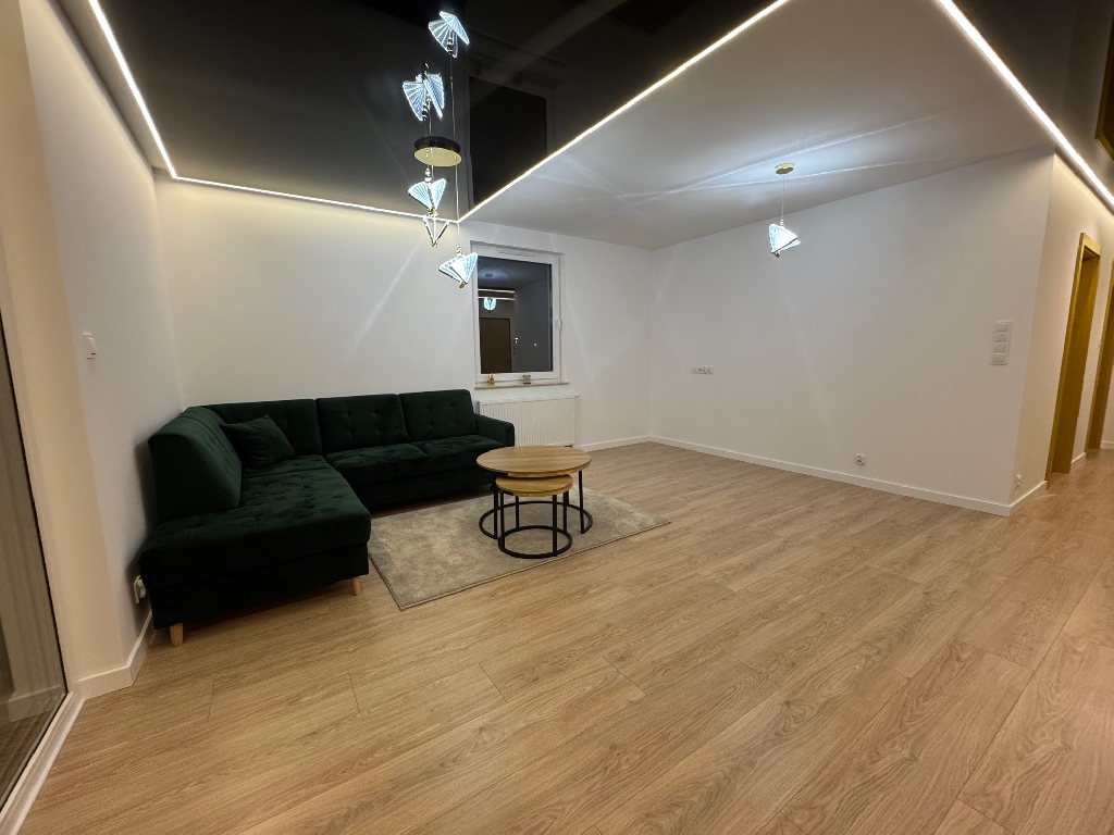 Mieszkanie jest zupełnie nowe, umeblowane i nowocześnie wyposażone w wysokiej jakości sprzęt AGD, w tym pralkę, zmywarkę i lodówkę. Istnieje możliwość doposażenia mieszkania, do uzgodnienia z właścicielem.