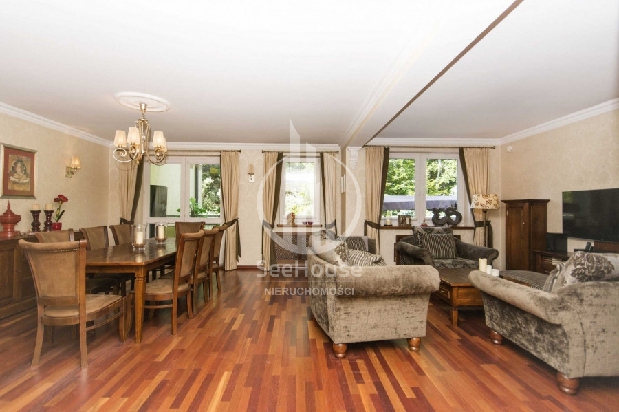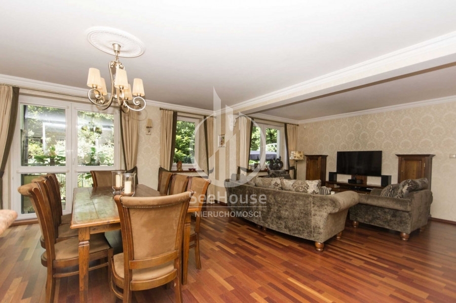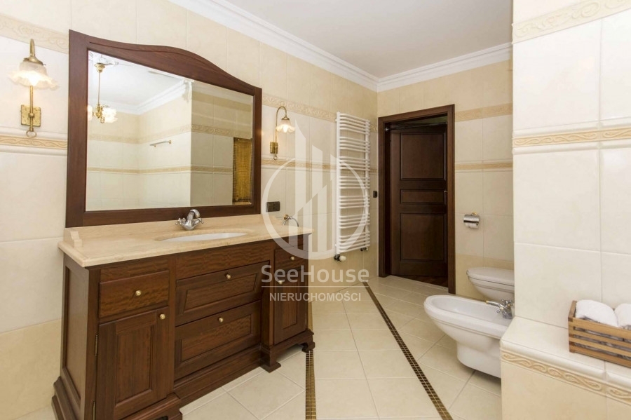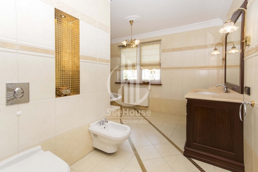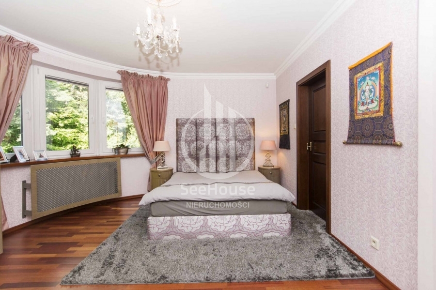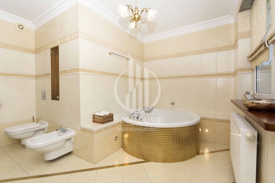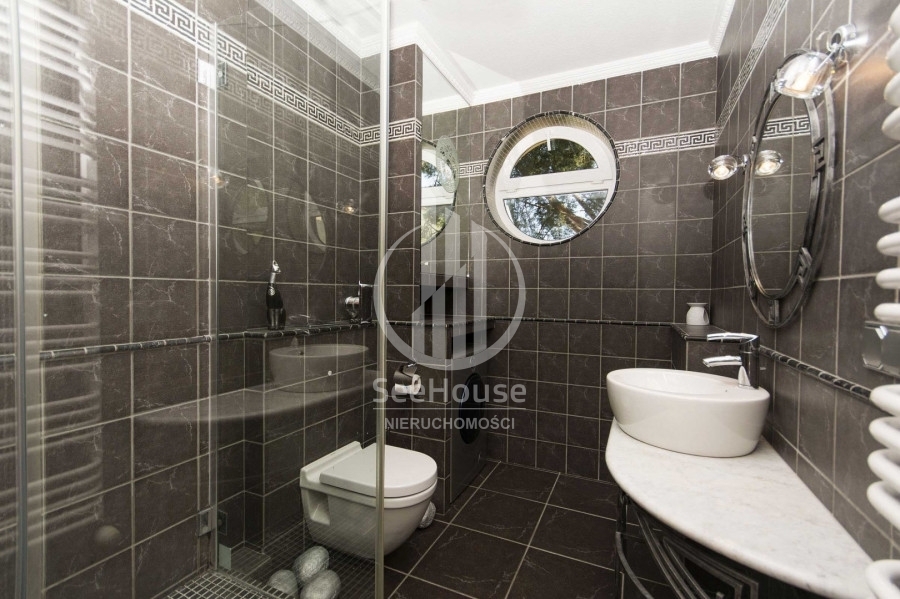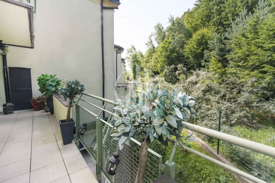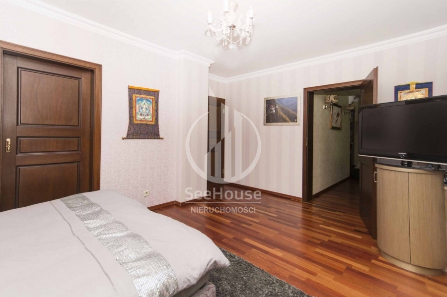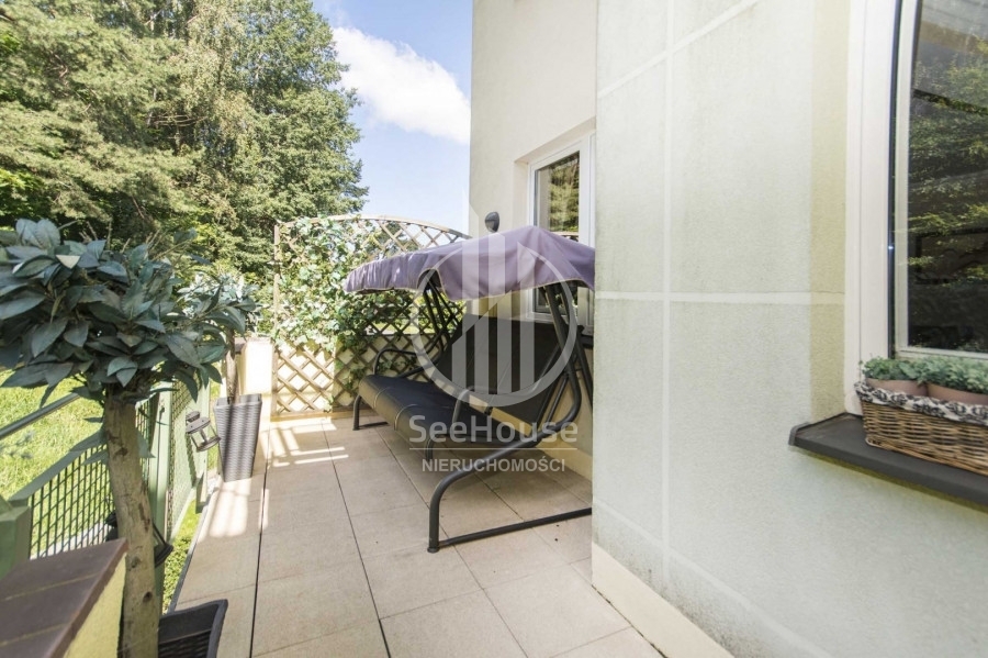 Mieszkanie znajduje się na 1 piętrze i składa się z salonu z kuchnią oraz jadalnią, głównej sypialni z łazienką oraz garderobą, dodatkową, mniejszą sypialnią, dodatkowej łazienki oraz pięknego, słonecznego balkonu o powierzchni ok. 13m2. Można tu na świeżym powietrzu doskonale zrelaksować się z książką i podziwiać malowniczy las rosnący tuż przed balkonem. Wyjście na balkon znajduje się w przestronnym salonie, w którym wydzielono kilka stref pełniących różne funkcje. Strefa wypoczynkowa, umożliwia relaks przed telewizorem na wygodnych kanapach. Kuchnia wyposażona w nowoczesną zabudowę i sprzęty AGD takie jak lodówka, zmywarka, płyta ceramiczna oraz piekarnik ułatwia przygotowywanie posiłków. Przytulna i obszerna sypialnia główna posiada własną funkcjonalną garderobę oraz luksusową łazienkę z ogromną wanną, bidetem i pozłacanymi kafelkami. Mniejsza sypialnia idealnie nadaje się na pokój dziecięcy, gościnny lub biuro. Obok mniejszej sypialni znajduje się druga łazienka z przeszklonym prysznicem, pralką i posrebrzanymi kafelkami.